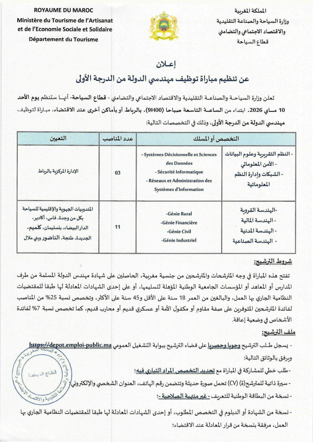 قطاع السياحة مباراة توظيف 14 مهندس دولة من الدرجة الأولى آخر أجل 17 أبريل 2026