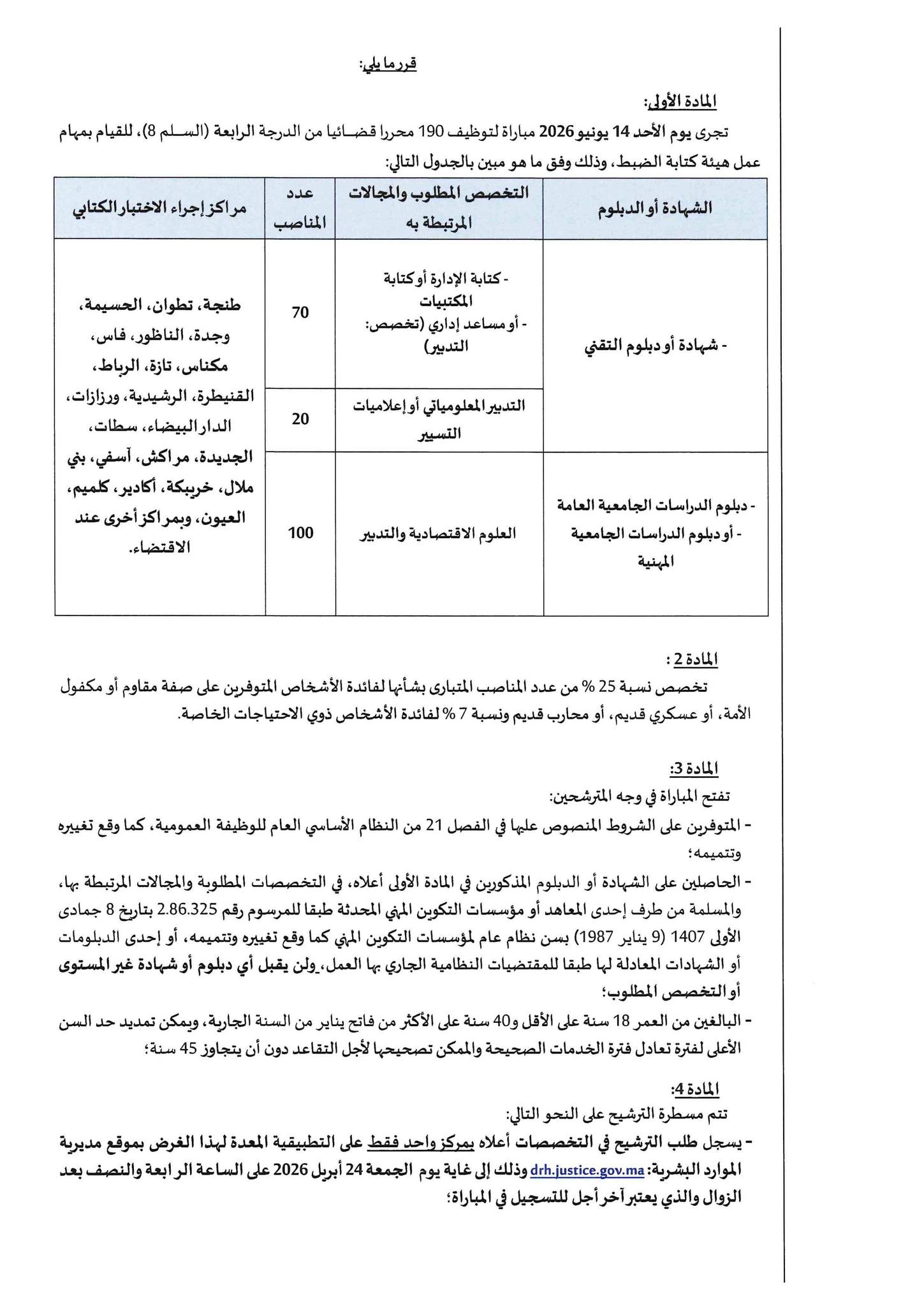 مباراة توظيف 190 محرر قضائي من الدرجة الرابعة بوزارة العدل آخر أجل 24 أبريل 2026