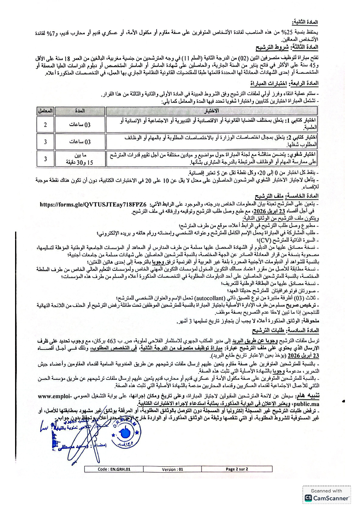 مباراة توظيف 2 متصرفين من الدرجة الثانية بالمكتب الجهوي للاستثمار الفلاحي لملوية 2026