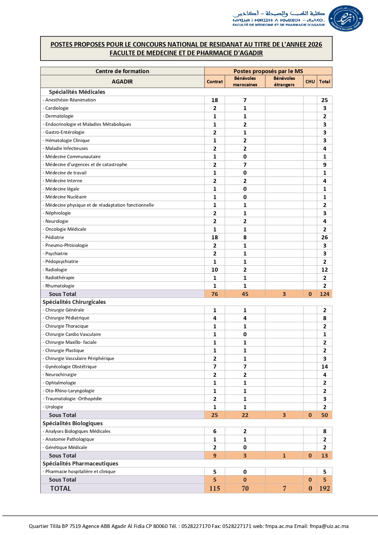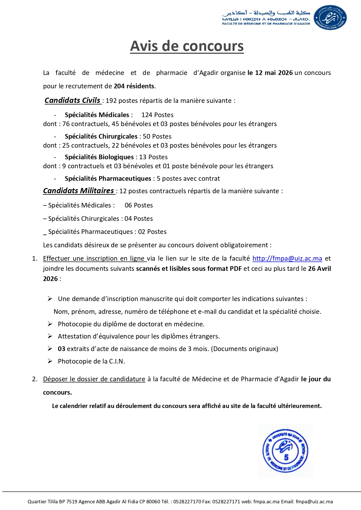 كلية الطب و الصيدلة بأكادير مباراة توظيف 204 طبيب مقيم آخر أجل 25 أبريل 2026
