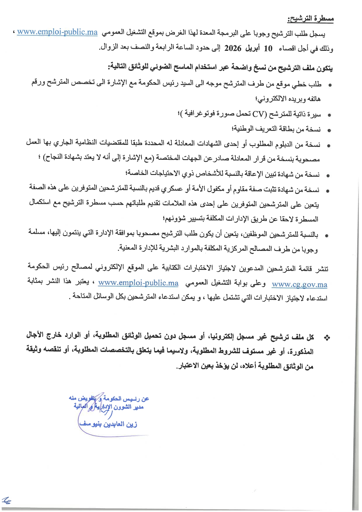 مباراة توظيف 3 تقنيين من الدرجة الثالثة برئاسة الحكومة آخر أجل 10 أبريل 2026