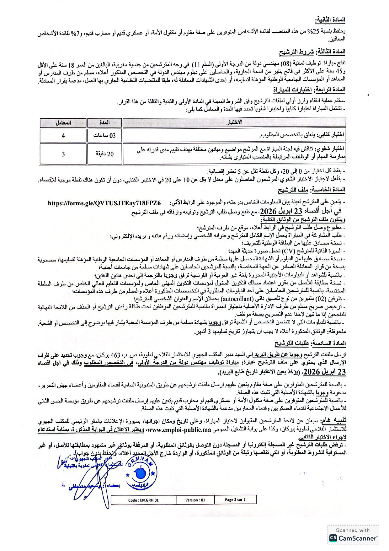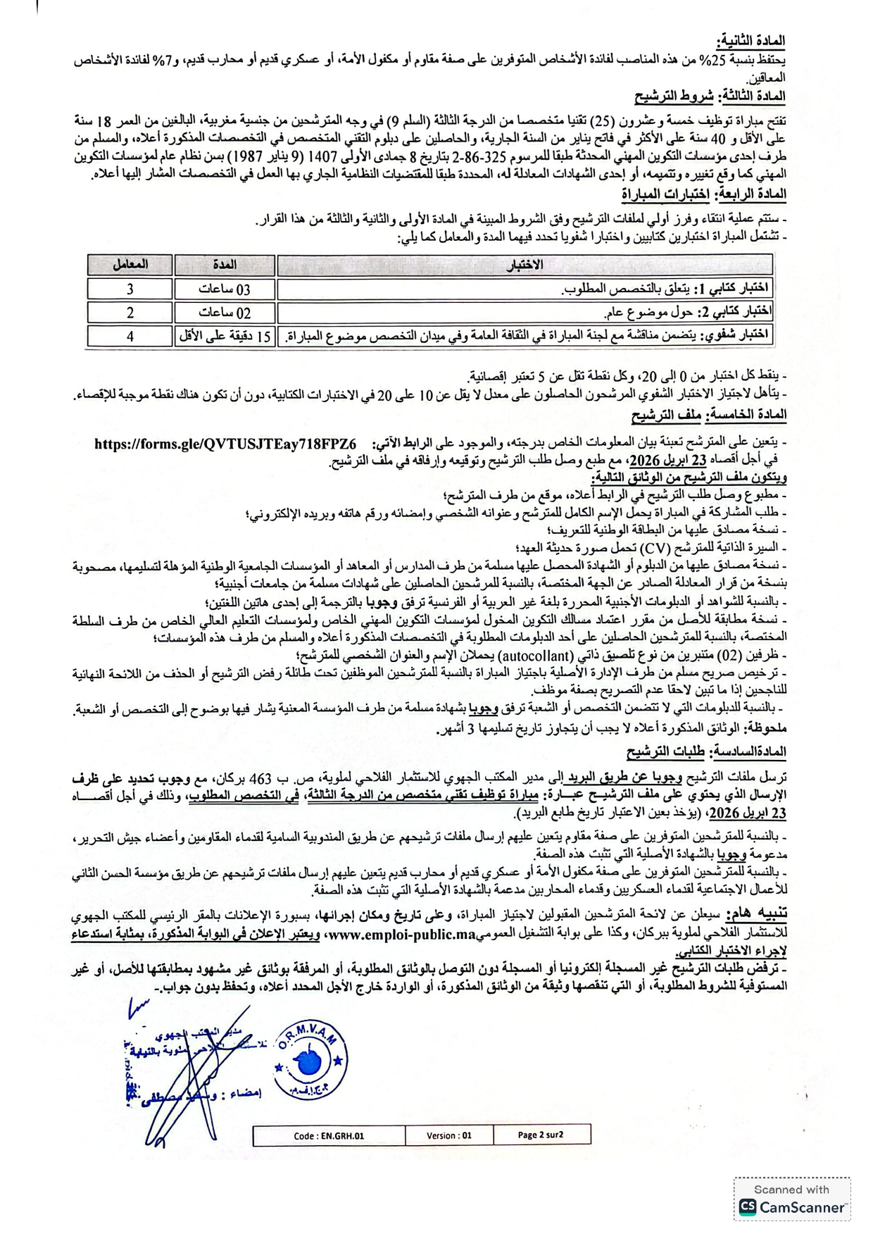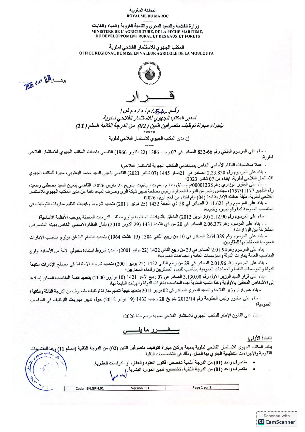 مباراة توظيف 35 منصب بالمكتب الجهوي للاستثمار الفلاحي لملوية 2026