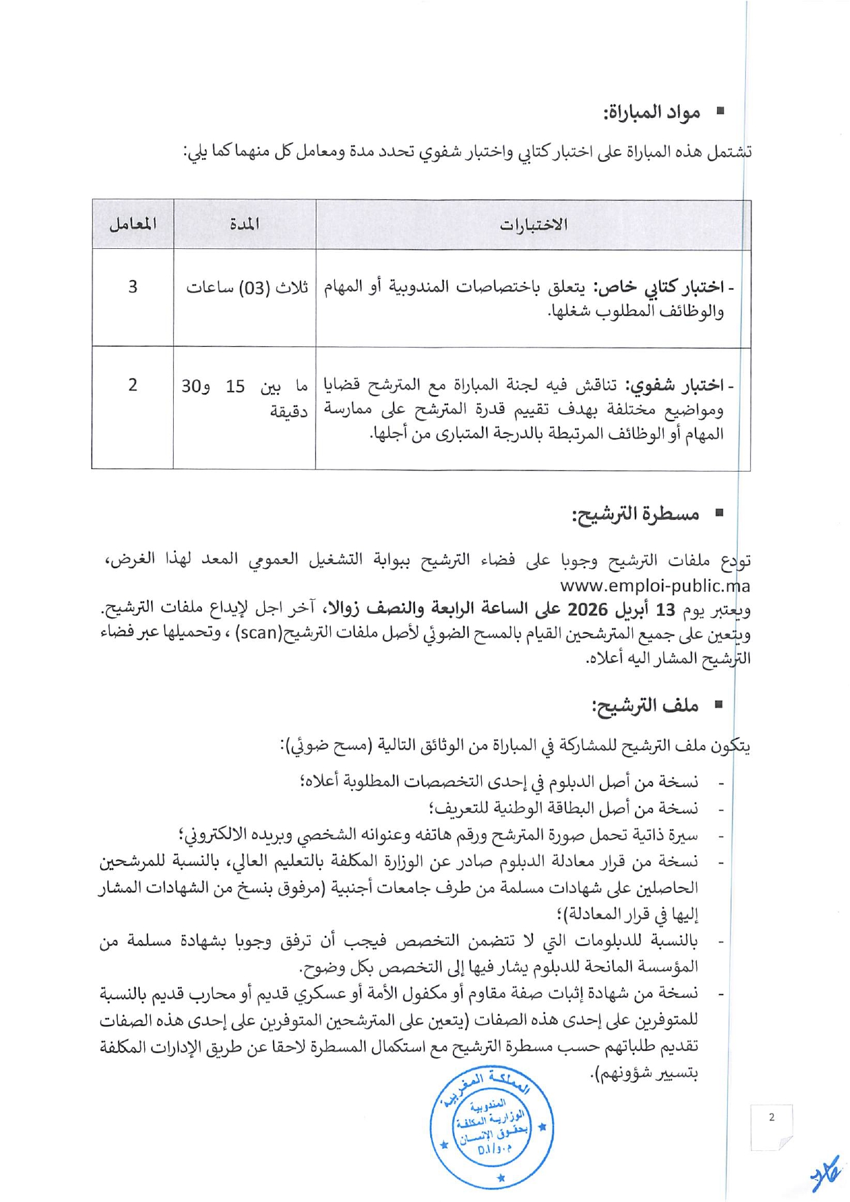 المندوبية الوزارية المكلفة بحقوق الإنسان مباراة توظيف 4 تقنيين من الدرجة الثالثة آخر أجل 13 أبريل 2026
