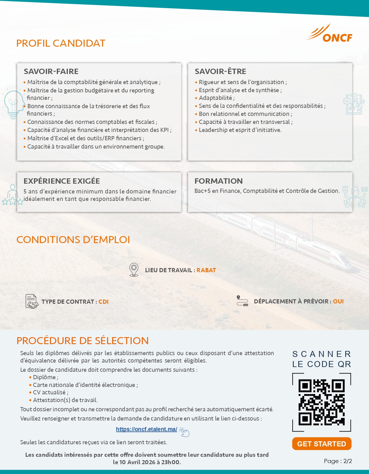 مباراة توظيف 4 مناصب بالمكتب الوطني للسكك الحديدية آخر أجل 10 أبريل 2026