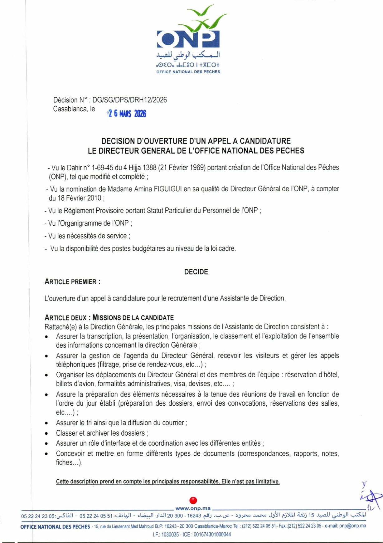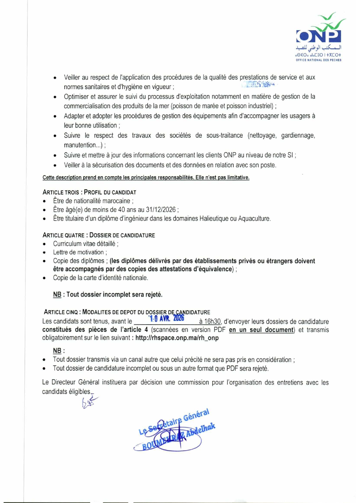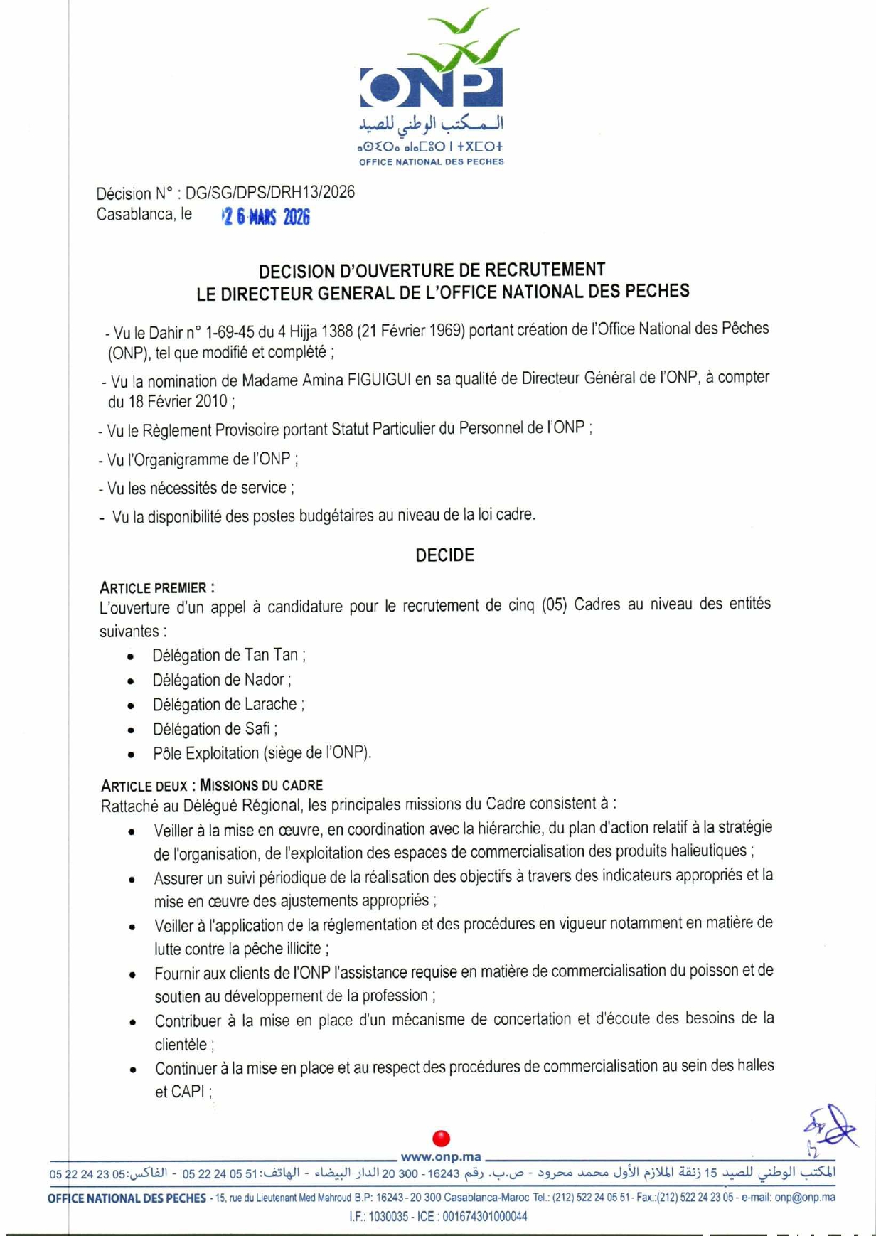 مباراة توظيف 6 مناصب بالمكتب الوطني للصيد 2026