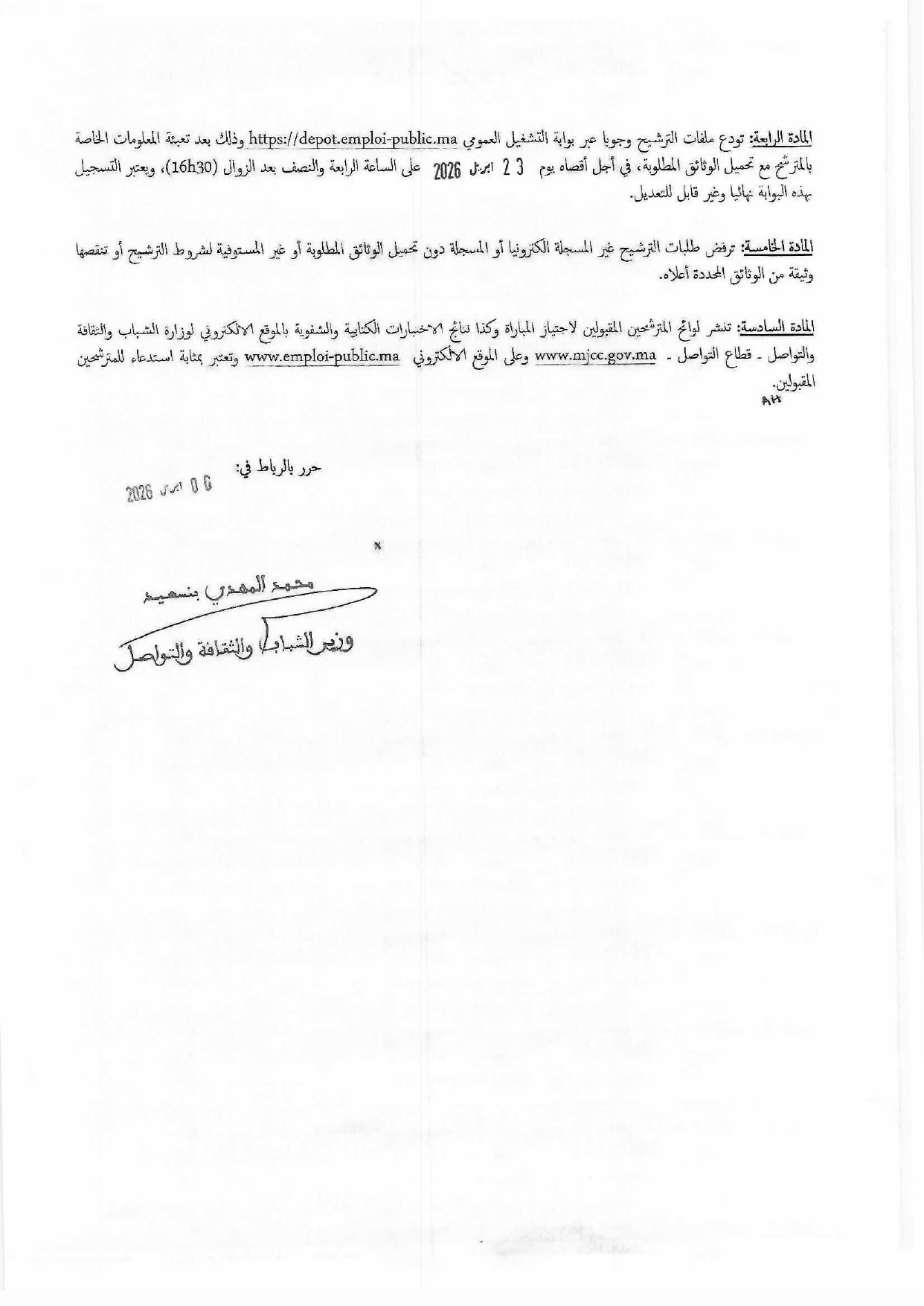 وزارة الشباب والثقافة والتواصل بقطاع التواصل مباراة توظيف 6 مناصب آخر أجل 23 أبريل 2026