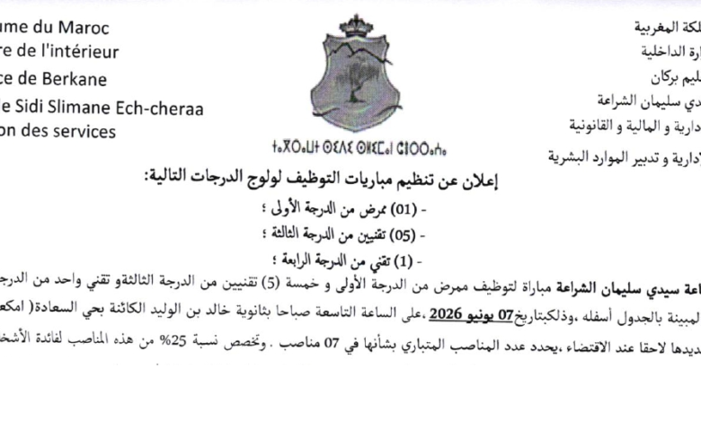مباراة توظيف 7 مناصب بجماعة سيدي سليمان الشراعة إقليم بركان آخر أجل 7 ماي 2026