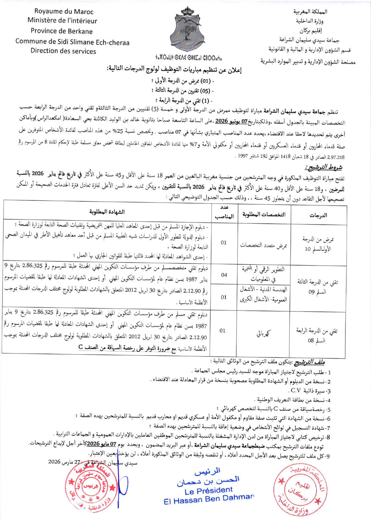 جماعة سيدي سليمان الشراعة إقليم بركان مباراة توظيف 7 مناصب آخر أجل 7 ماي 2026