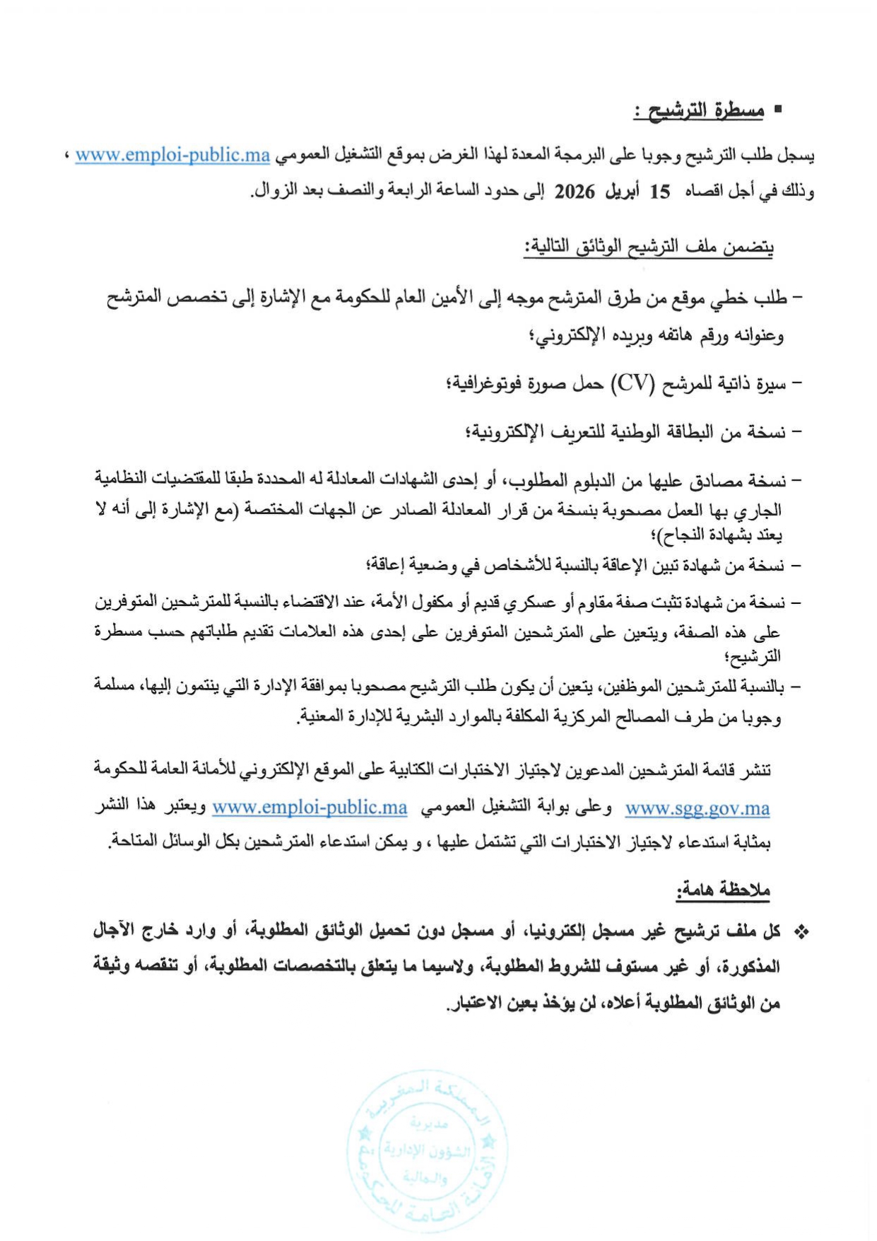 مباراة توظيف 7 مهندسي دولة من الدرجة الأولى بالأمانة العامة للحكومة آخر أجل 15 أبريل 2026