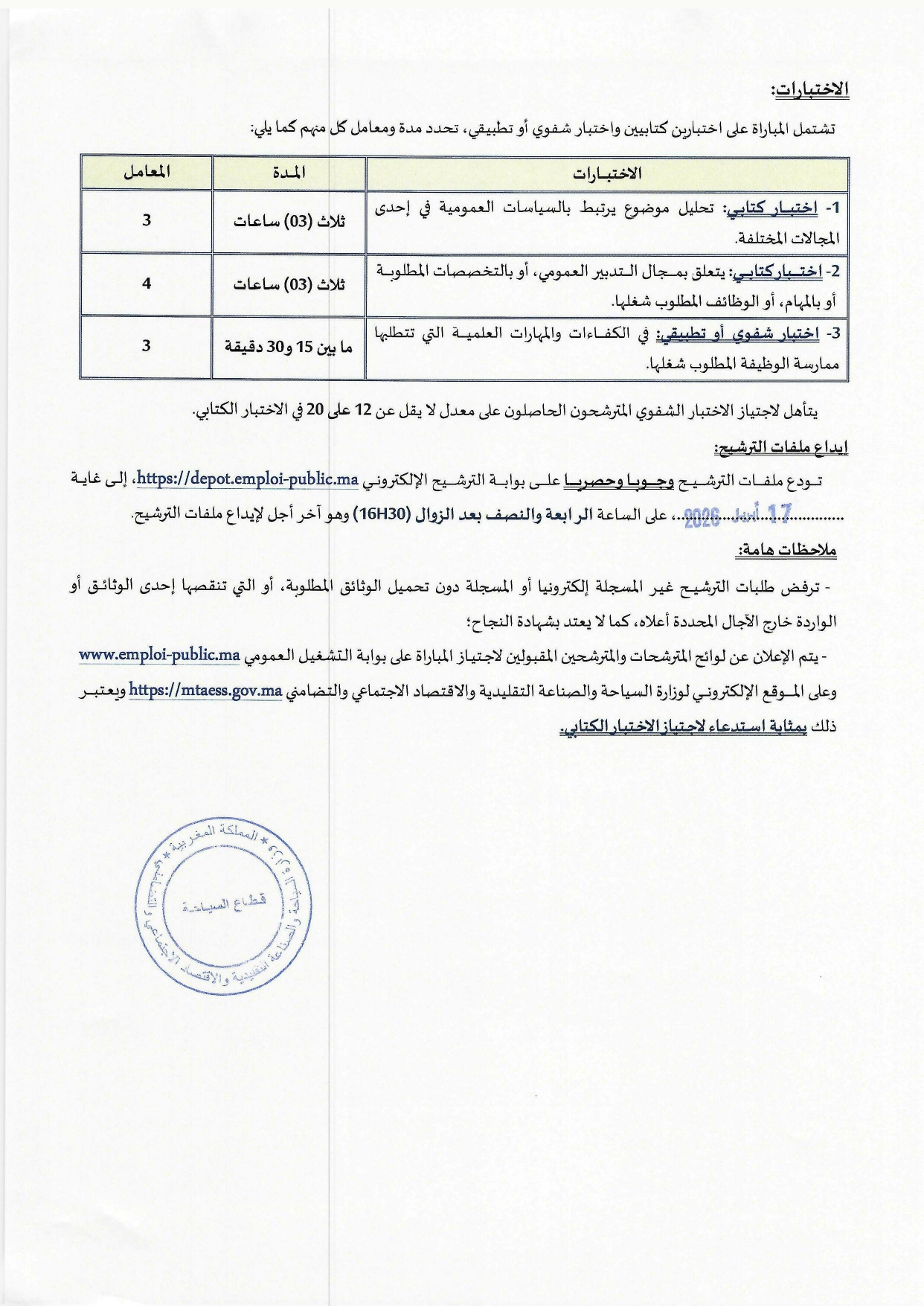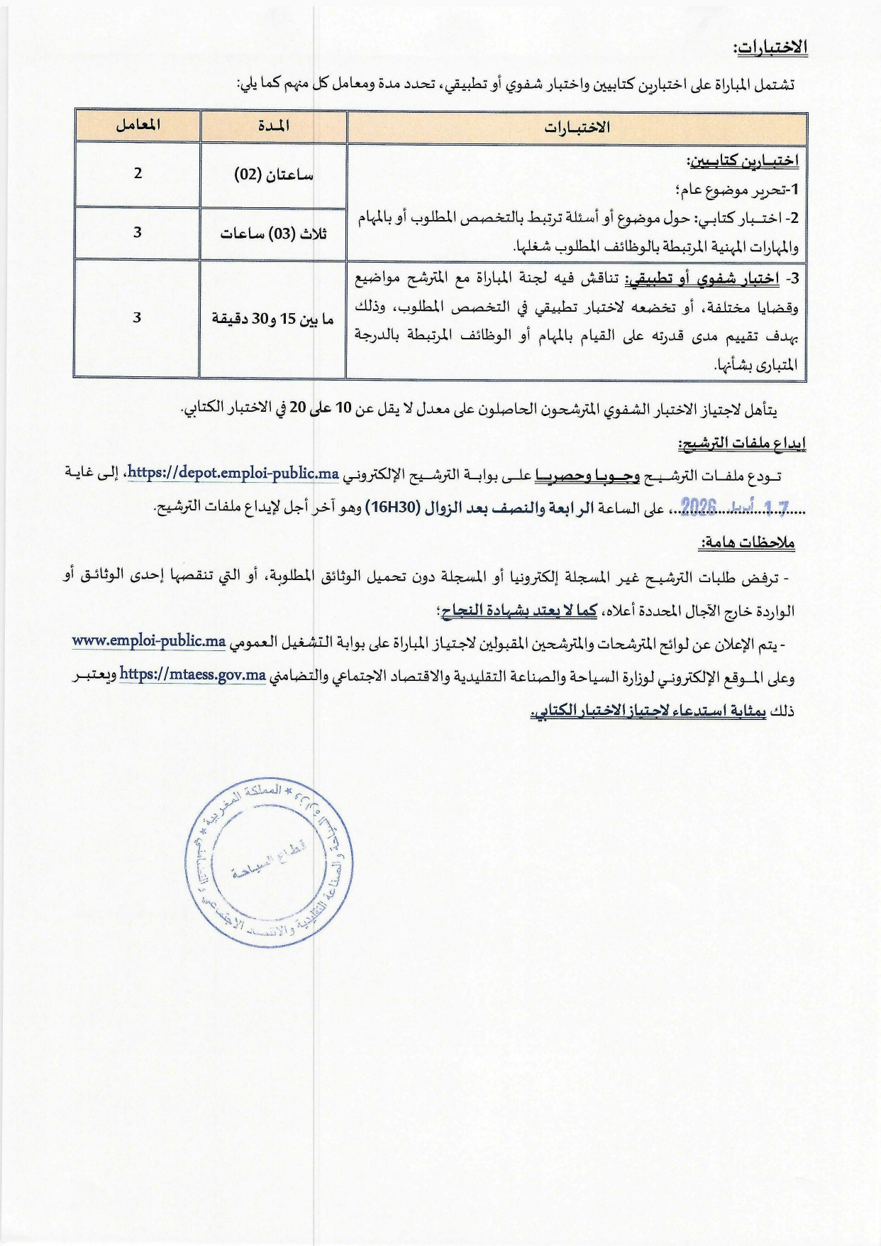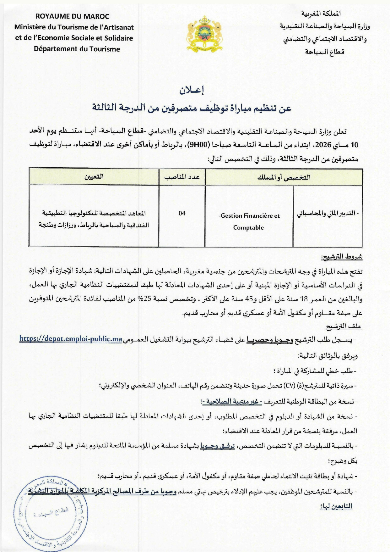 مباراة توظيف 8 متصرفين من الدرجة الثالثة بقطاع السياحة آخر أجل 17 أبريل 2026