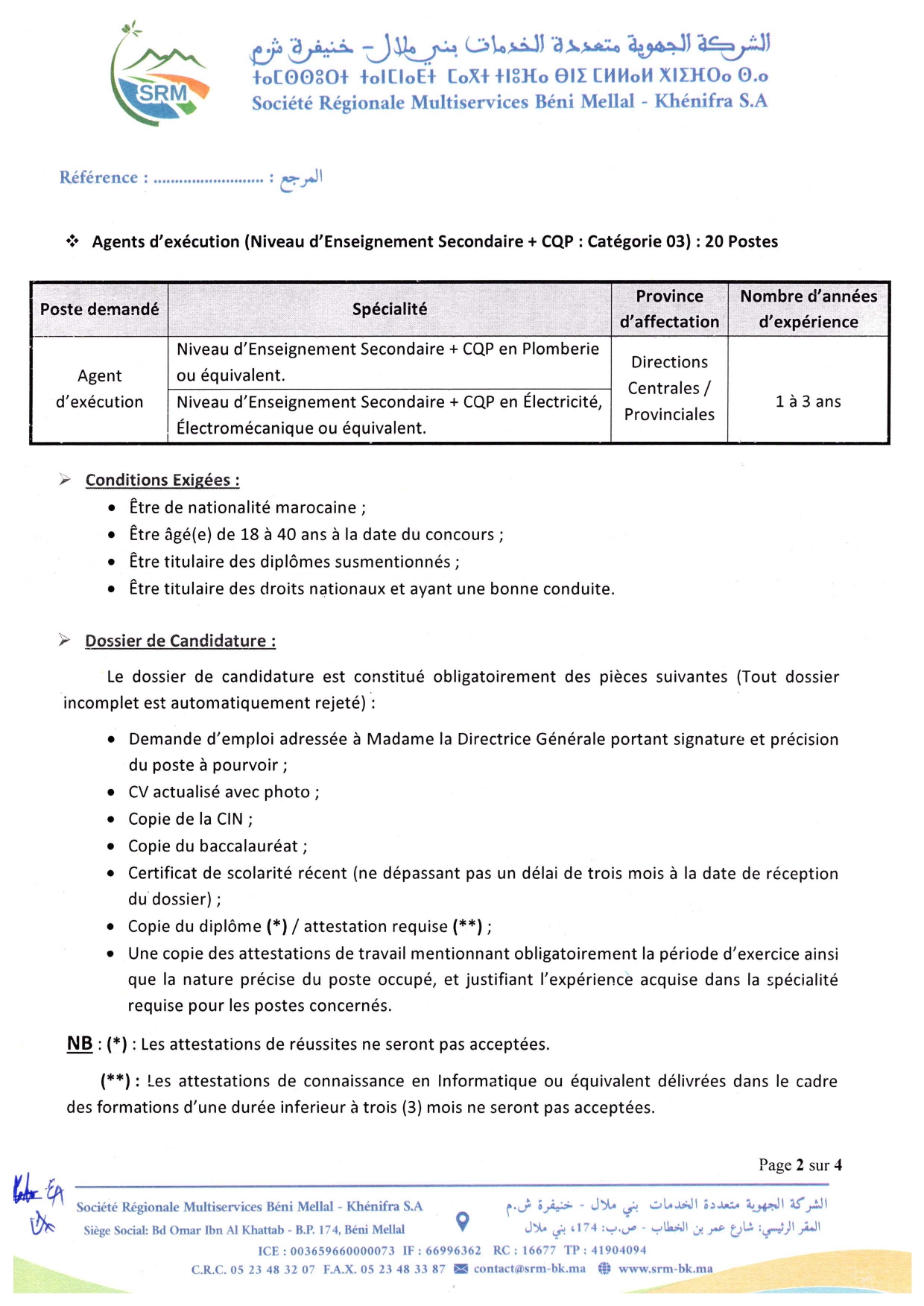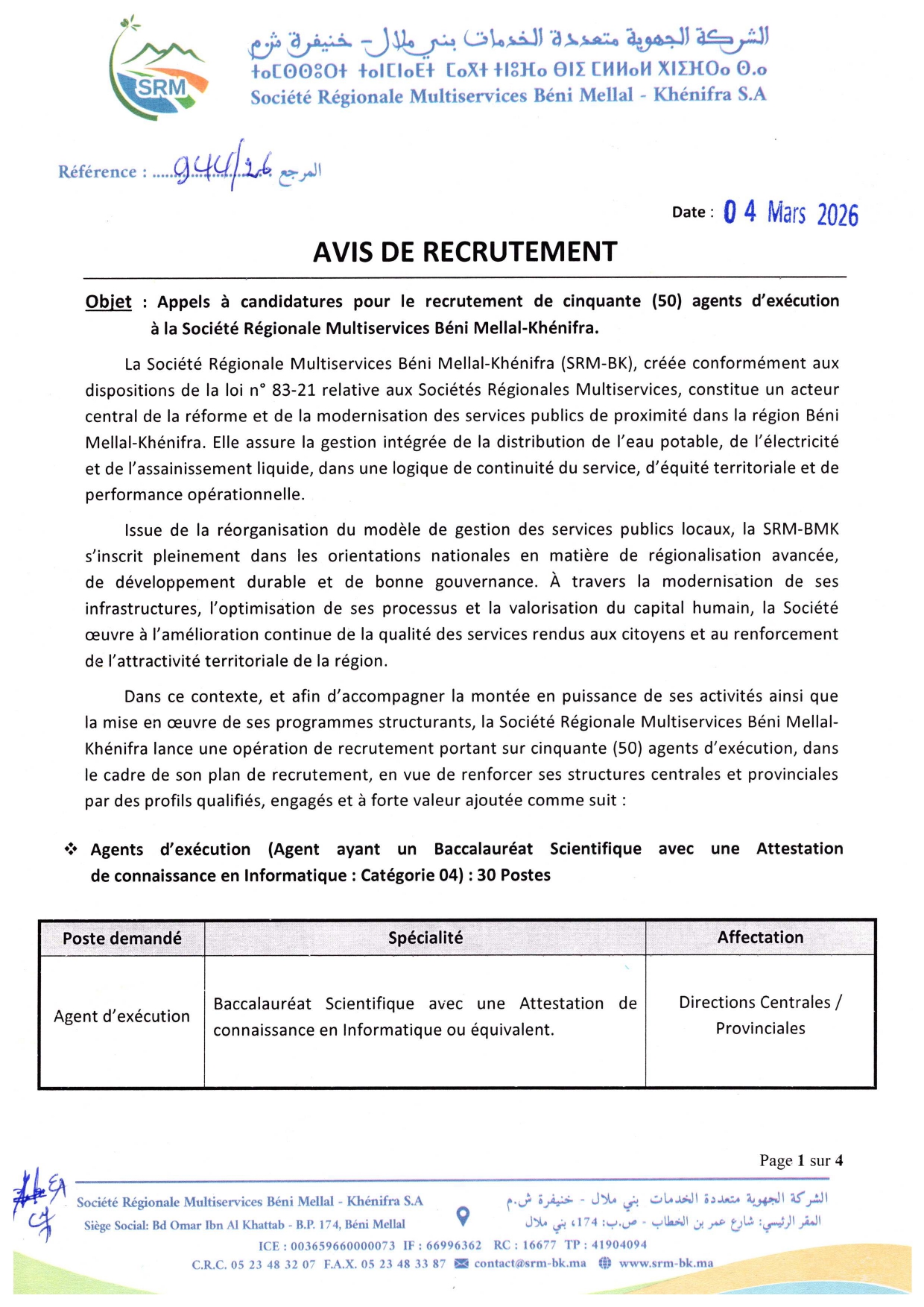 مسابقة توظيف 170 وظيفة بالشركة الجهوية متعددة الخدمات بني ملال خنيفرة آخر موعد للتقديم 20 مارس 2026