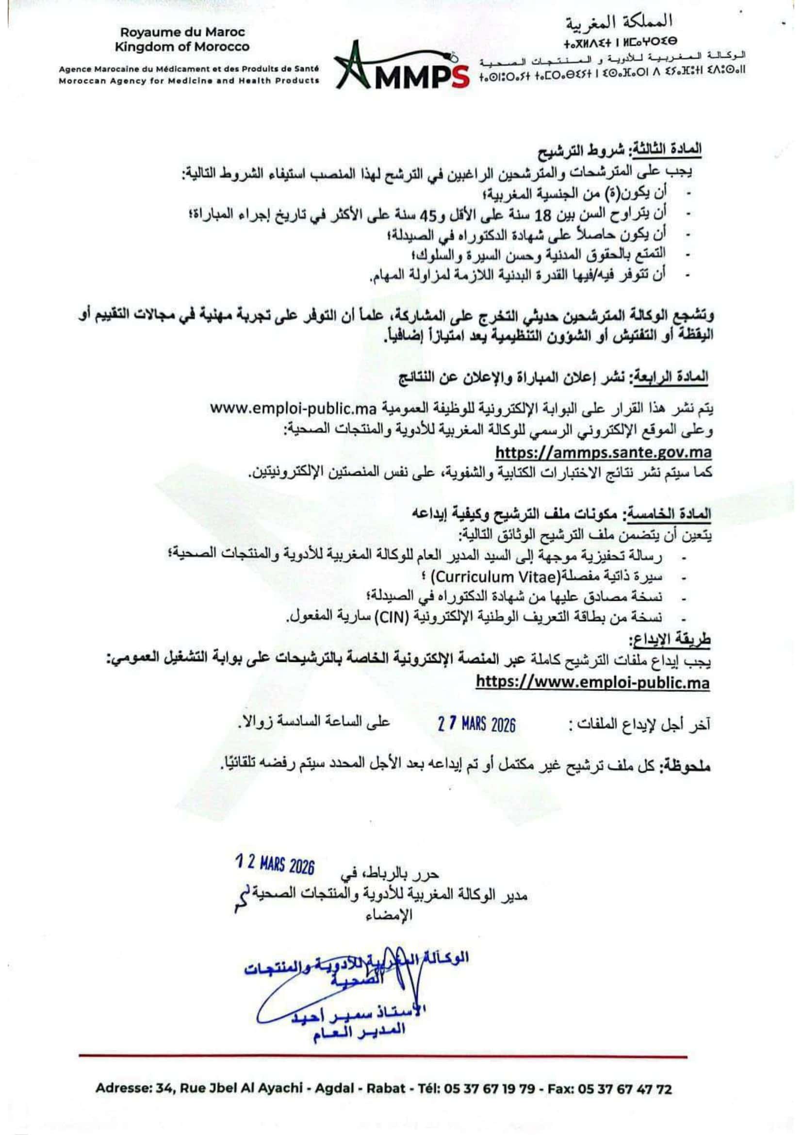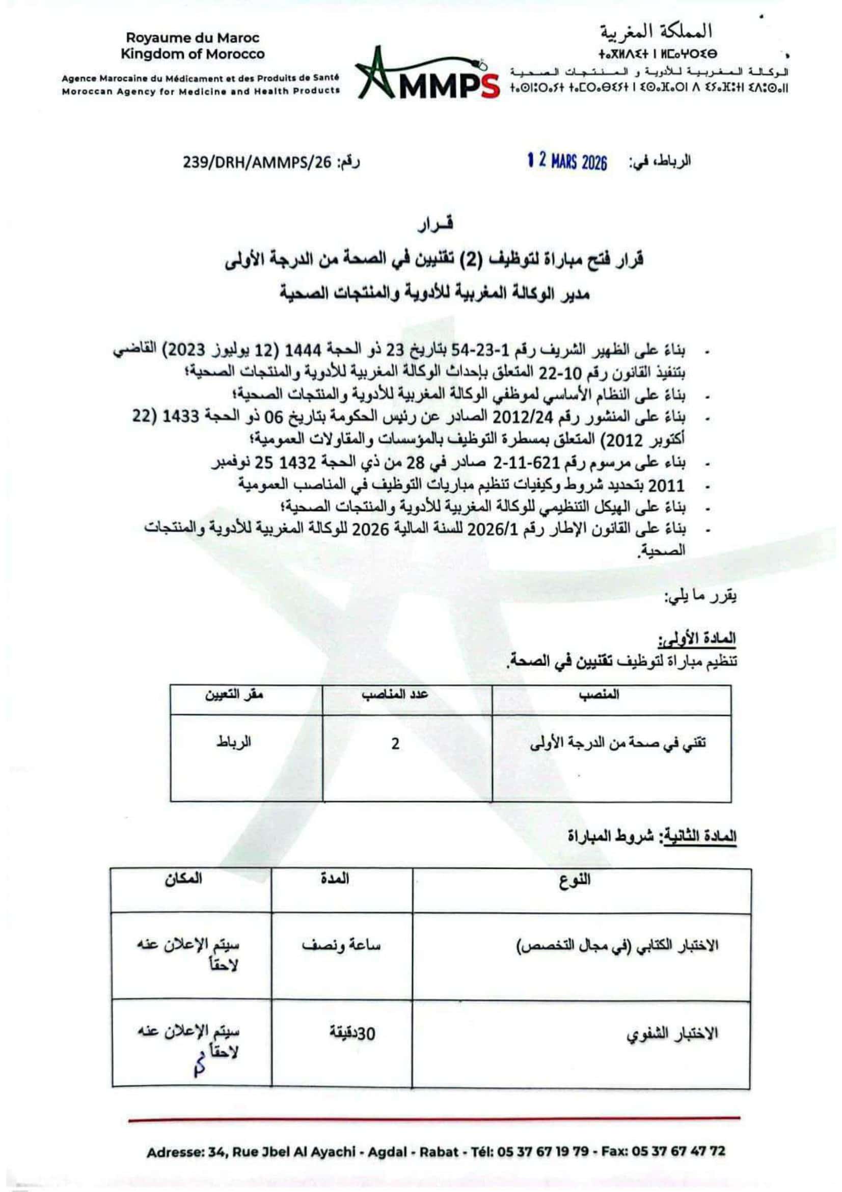 مباراة توظيف AMMPS 2026 (23 منصبًا)