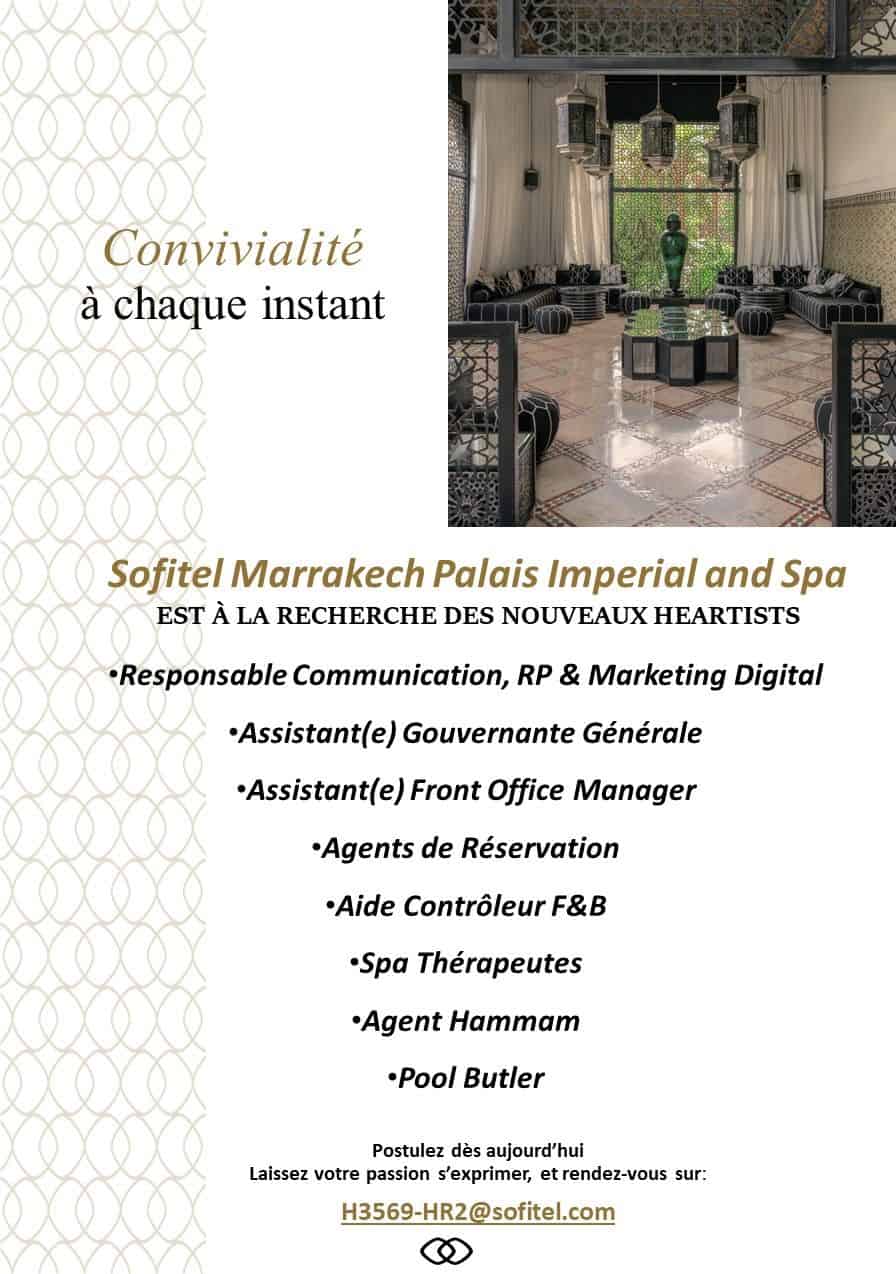Sofitel Marrakech Palais Imperial & Spa recrute plusieurs profils dans les métiers de l’hôtellerie à Marrakech, en contrat à définir. Les postes s’adressent à des candidats souhaitant évoluer dans un établissement hôtelier haut de gamme appartenant à un groupe international.